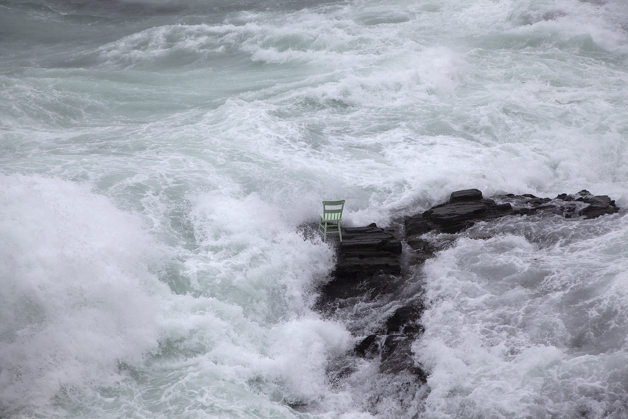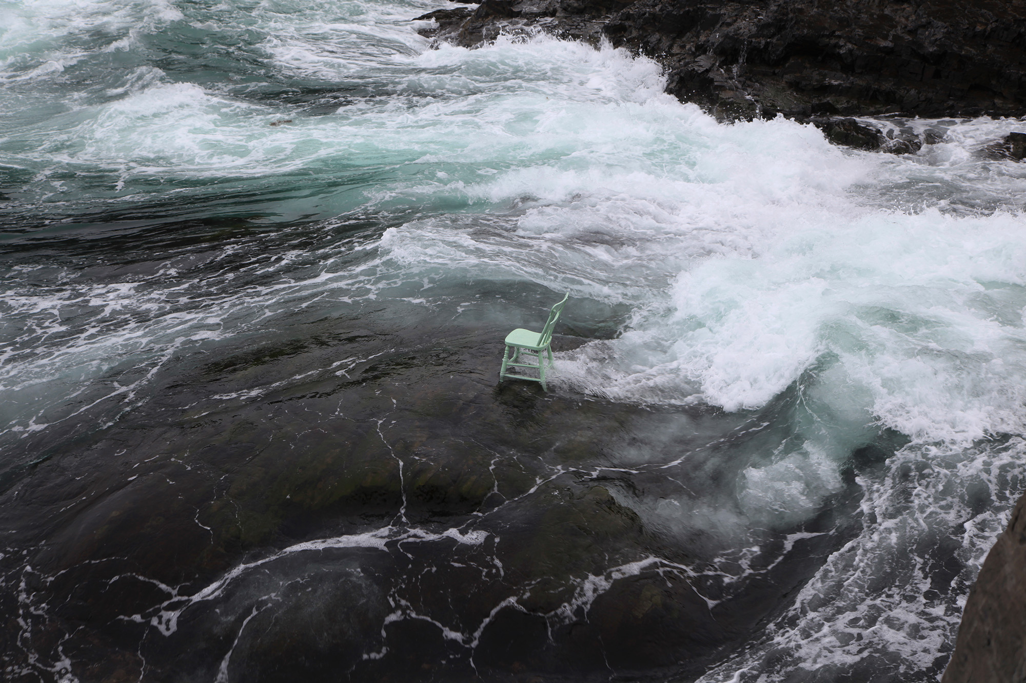 The idea of placing a chair in the face of wind and waves from the north Atlantic was meant as a way to express the notion of fortitude against unrelenting forces. During the 2017 Bonavista Biennale in Newfoundland, visitors to Maberly saw the chair when the waves were wild and angry, when conditions were calm and when the light was dramatic. Every day was different. During its 7 month existence, its meaning seemed to be ever-changing. On March 1st, 2018, The Green Chair was damaged beyond repair by pack ice blown onshore. Many thanks to The Bonavista Biennale for commissioning this work and to the many people who went to visit it.